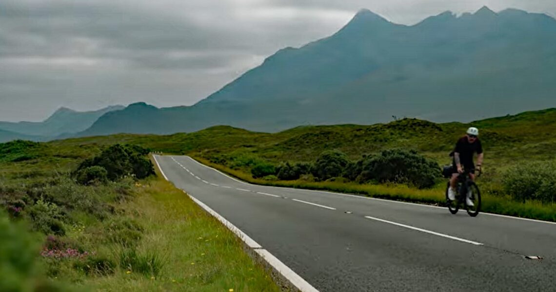 The reason that he chose an anti-clockwise route was to enjoy the northwest coast of Scotland. An area normally of great scenic beauty the bad weather killed the joy. Nonetheless cameraman Jack Hague managed did an excellent job in the video. But it was in this section of the trip that various things go wrong. Besides the weather, there are mechanical issues that make things difficult, from a broken spoke to the crank coming loose. After so many days of long miles on the road it all contributes to visible stress. Certainly the last straw is his experience on the Isle of Skye. Here he discovers some of the most dangerous roads he has ever experienced, shoulderless and with heavy fast traffic. It is the height of tourist season on Skye but not a place for a long-distance cyclist.