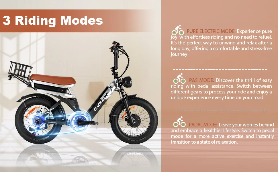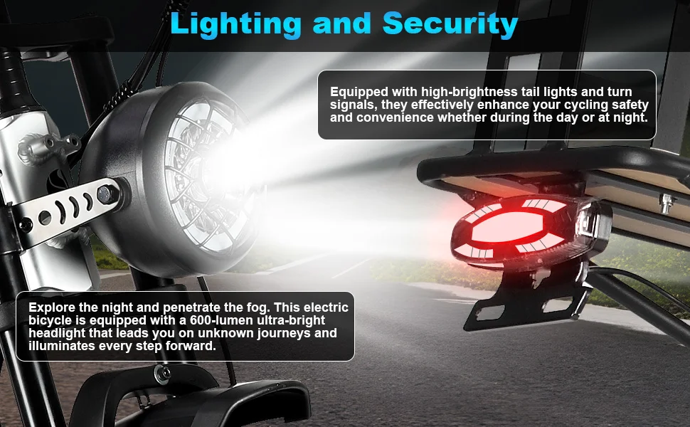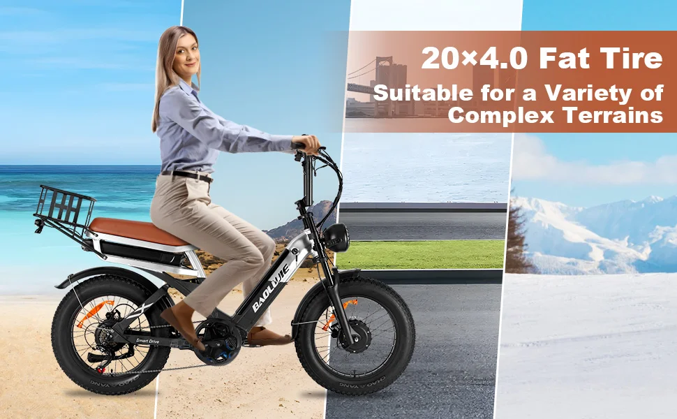 Designed for stability and grip, the 20” x 4” fat tires provide excellent traction on various surfaces. Whether youβre cruising on city streets or navigating through rough terrains, these tires ensure a smooth and safe ride, enhancing your overall biking experience.