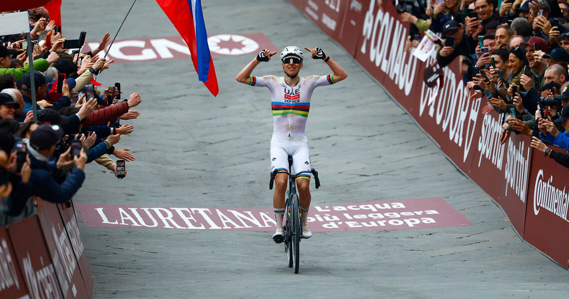RACE REPORT: There are few races that reward audacity like Strade Bianche, and on Saturday Tadej Pogačar delivered another masterpiece. The Slovenian attacked with more than 80 kilometers still to race, rode everyone off his wheel across Tuscany’s white gravel roads, and soloed into Siena for a record-setting fourth victory in the Italian gravel classic.
